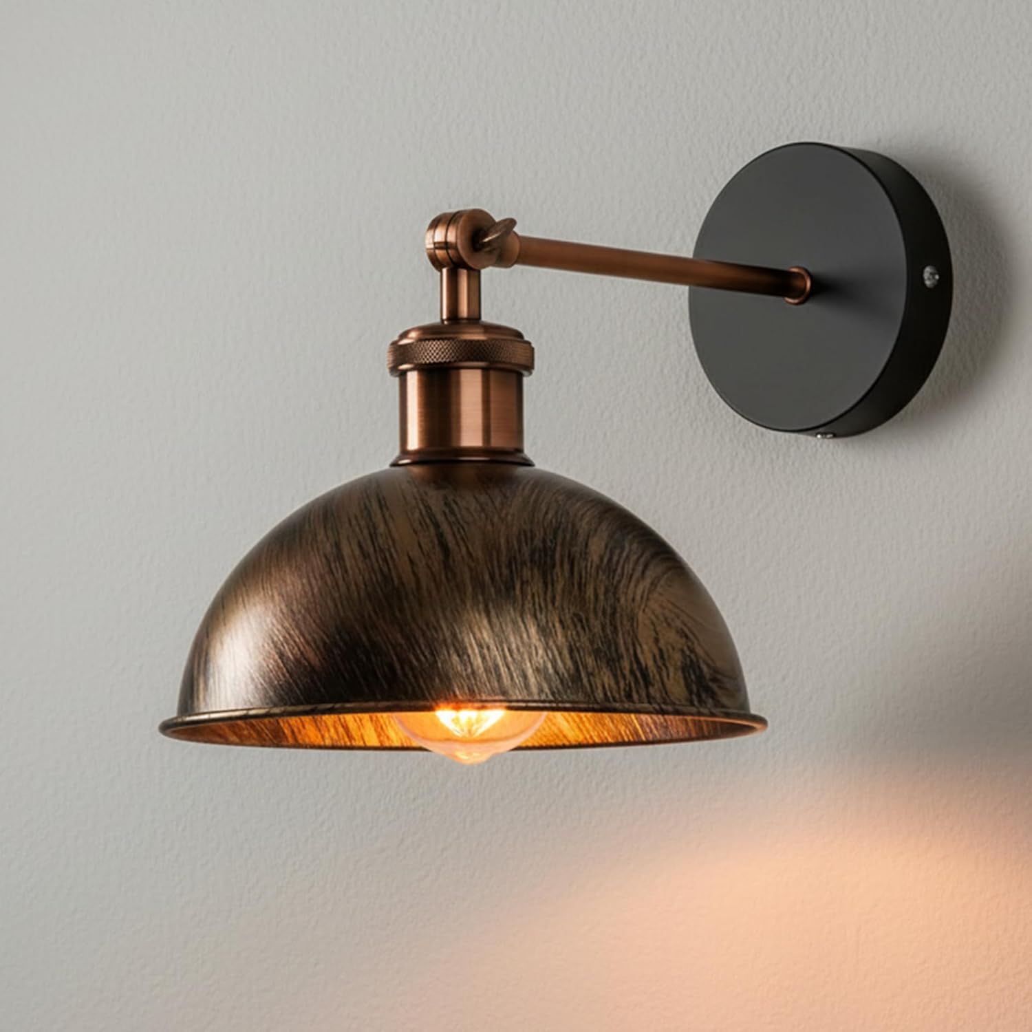 Transform your space with the timeless appeal of our Adjustable Dome Wall Sconce. This beautifully crafted light blends raw industrial design with vintage charm, making it a perfect statement piece for any room. Finished in a stunning brushed copper, it adds a warm, sophisticated glow to your home.
