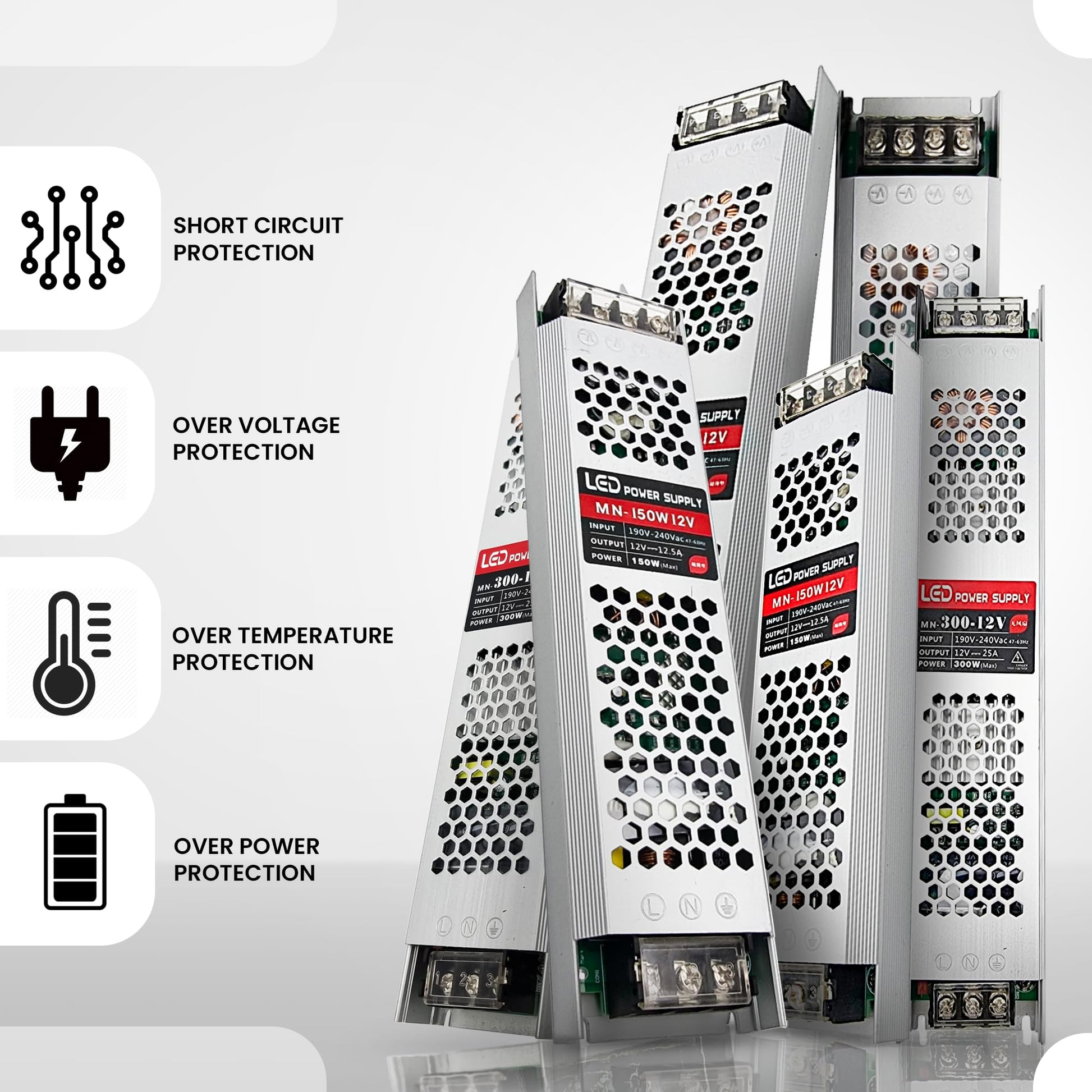 • Safe & Reliable: This 12V 5A power supply is built for safety. It features full protection against overload, over-voltage, and short circuits. The IP20 rating makes it touch-proof and resistant to dust.