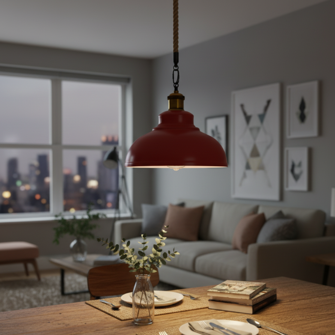 Hemp Rope Metal Pendant Light 11.41" Shaded ~1057