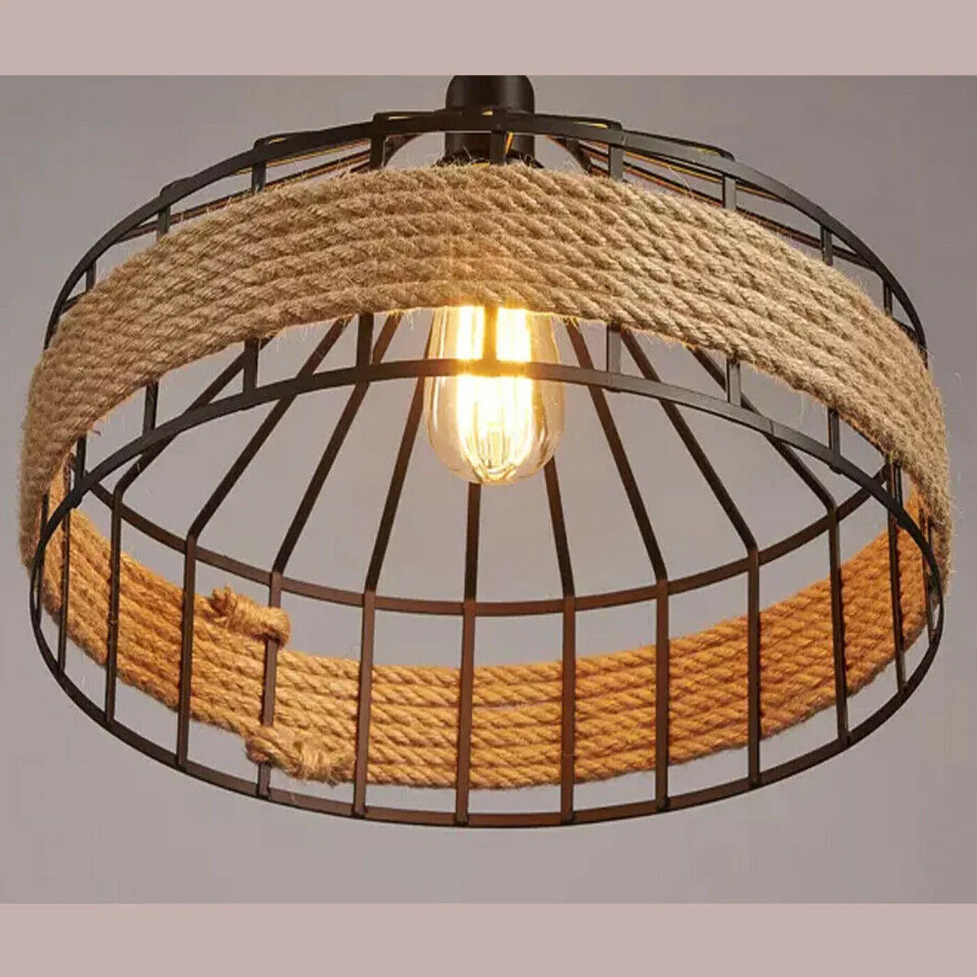 Farmhouse Hemp Rope & Metal Basket Pendant Light (11.41")