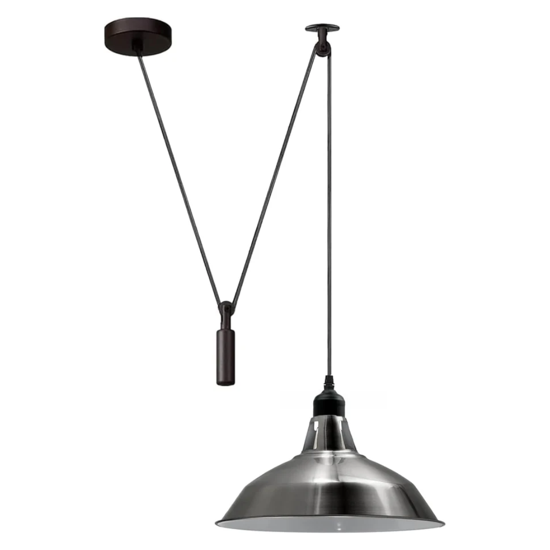• Its unique pulley system allows for a customizable height, giving you the flexibility to create the perfect lighting ambiance.