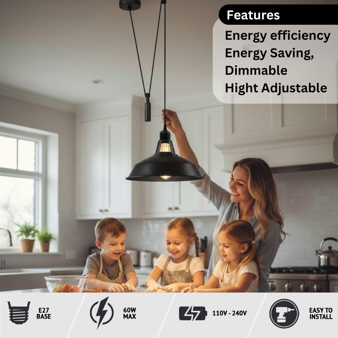 • Adjustable Height: The functional pulley mechanism lets you easily adjust the drop ceiling light to your desired height, perfect for task lighting over a kitchen island or ambient lighting in a dining room.
