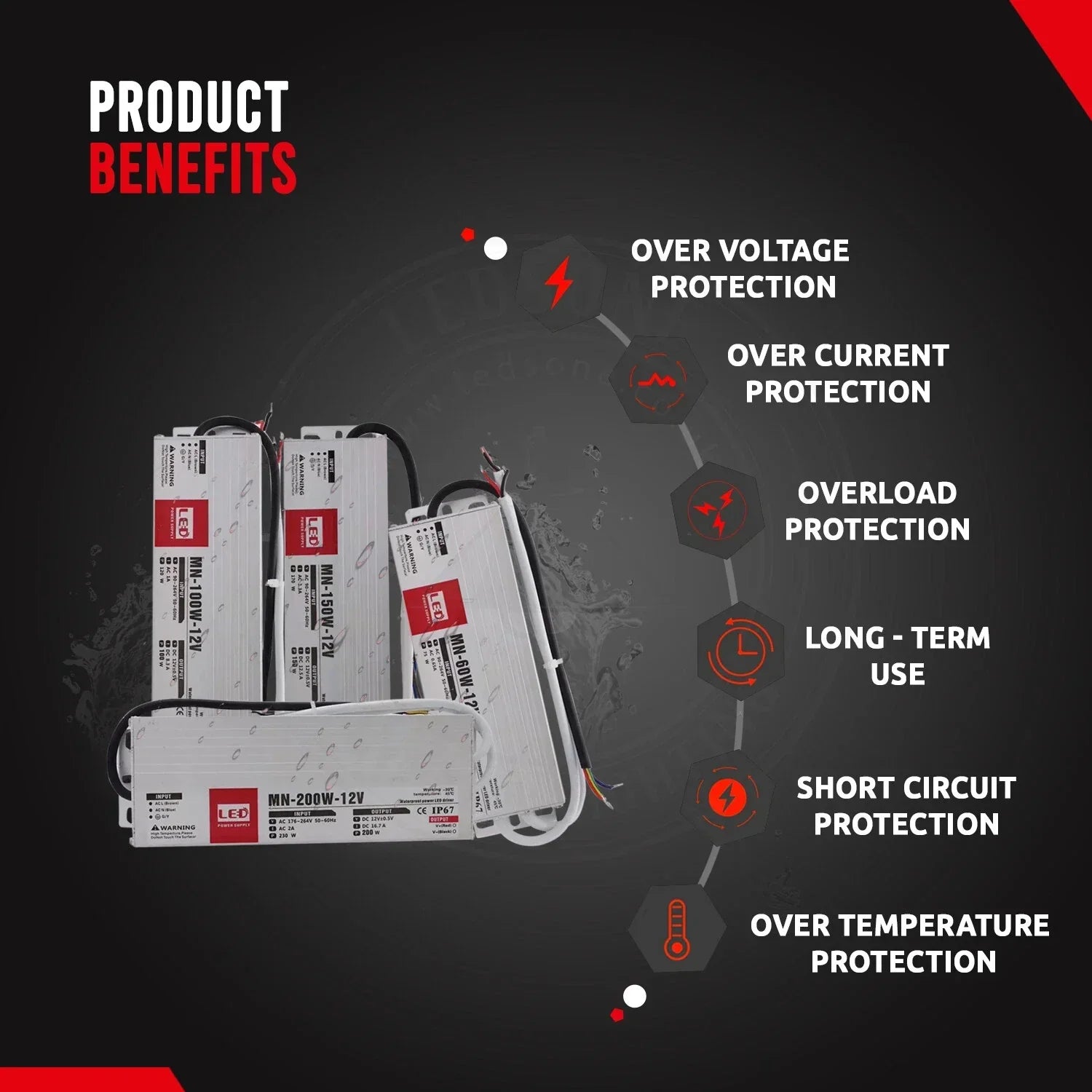 - Built-in Safety Protections: Features overload, over-voltage, and short circuit protection, safeguarding your LED systems for long-lasting performance and preventing damage.