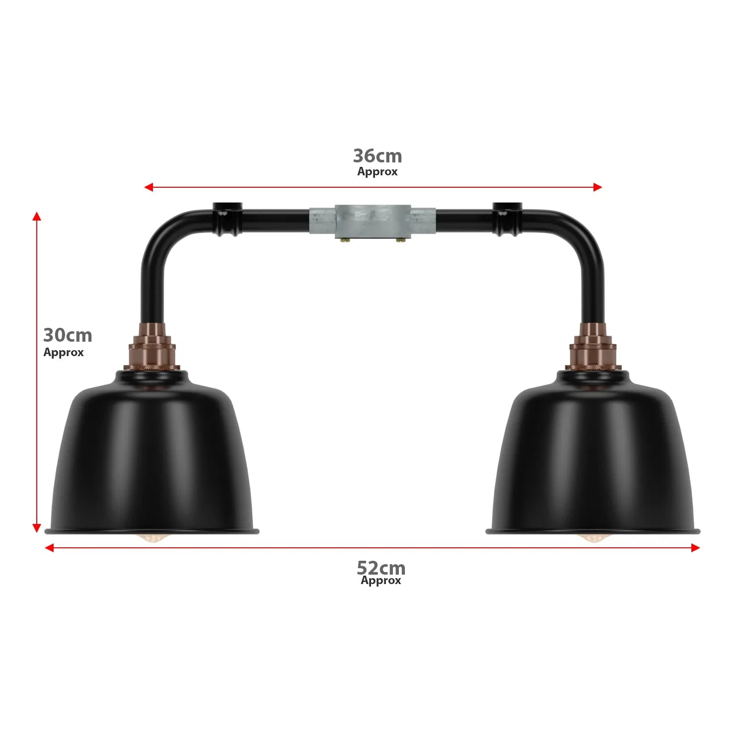 • Features two angled light fixtures, offering wide illumination while maintaining a stylish and balanced industrial look for any interior.