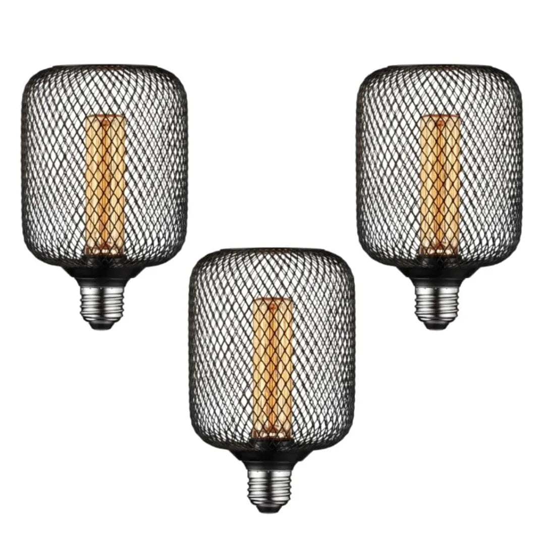 - Upgrade your space with the Black Metal Cage E27 Dimmable Vintage Edison LED Bulb.