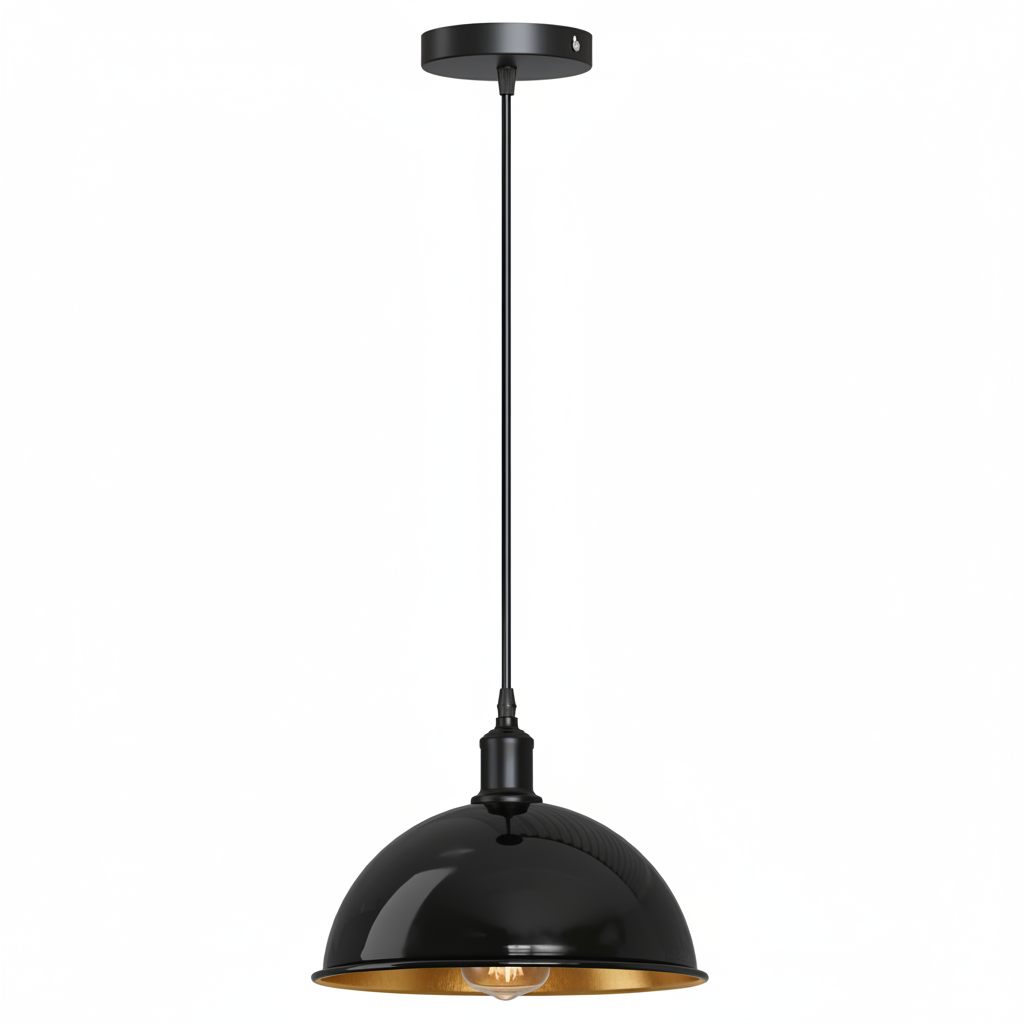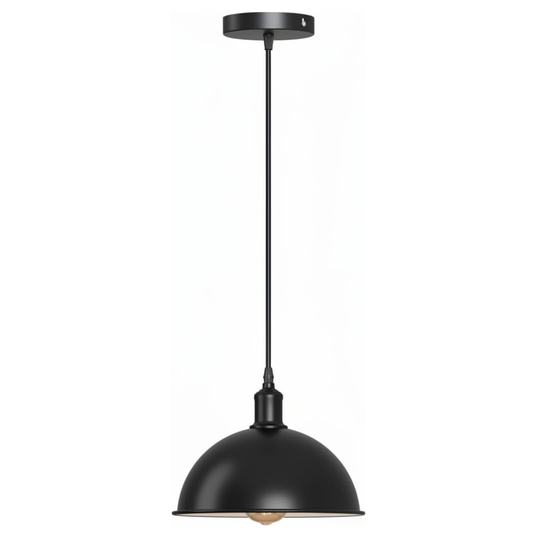 Industrial Black Metal Pendant Light - Vintage Kitchen & Dining Room Hanging Fixture